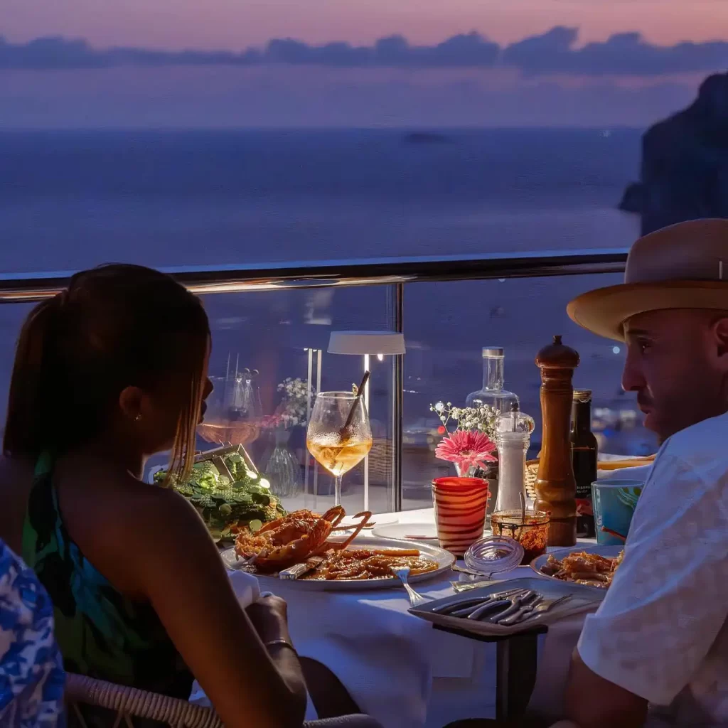 Le terrazze panoramiche che si affacciano sulla baia di Positano offrono il palcoscenico perfetto per una serata indimenticabile. È qui che la tradizione culinaria si fonde con uno spettacolo naturale mozzafiato.