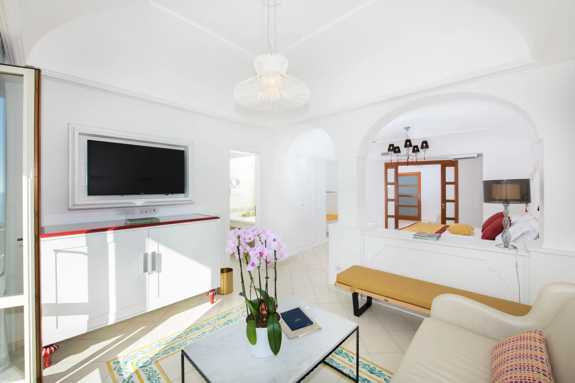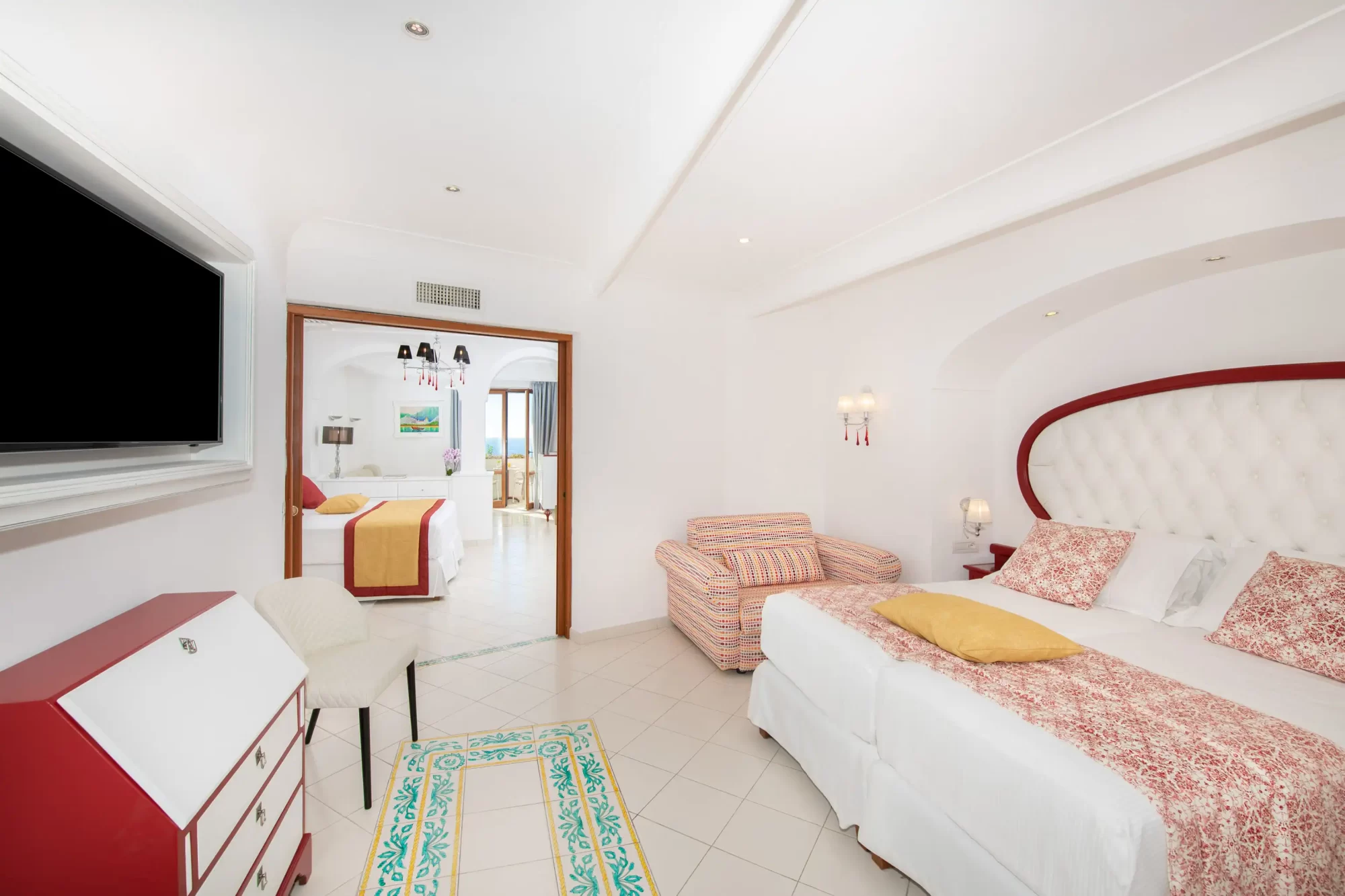 Questo tipo di soluzione dispone di due camere da letto, due bagni, un soggiorno in comune ed un balcone vista mare.